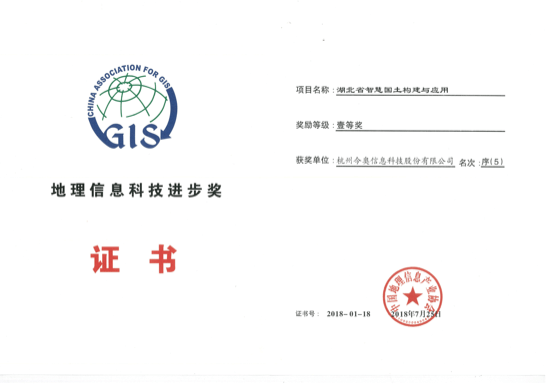 地理信息科技進步獎---湖北省智慧國土構(gòu)建與應用一等獎
